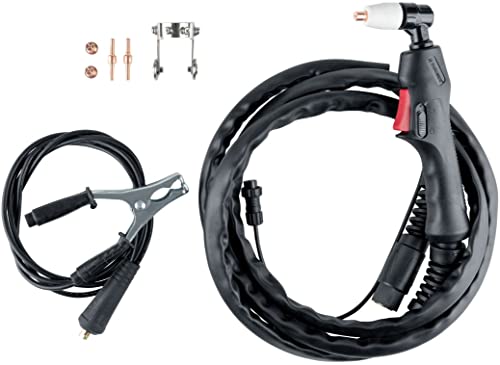 Cavo di taglio di alta qualità da 2,5 m con bruciatore sostituibile e guida a rulli rimovibili, cavo di messa a terra (2 m) con morsetto potente, tubo dell’aria compressa da 0,5 m con sistema di collegamento rapido (“Quick-Connect”), raffreddamento elettrico attivo, protezione da sovraccarico tramite termoguardia con spia di controllo, alloggiamento in lamiera d’acciaio verniciata con manico ergonomico, ingresso aria compressa supplementare per alimentazione dell’aria alternativa tramite un compressore